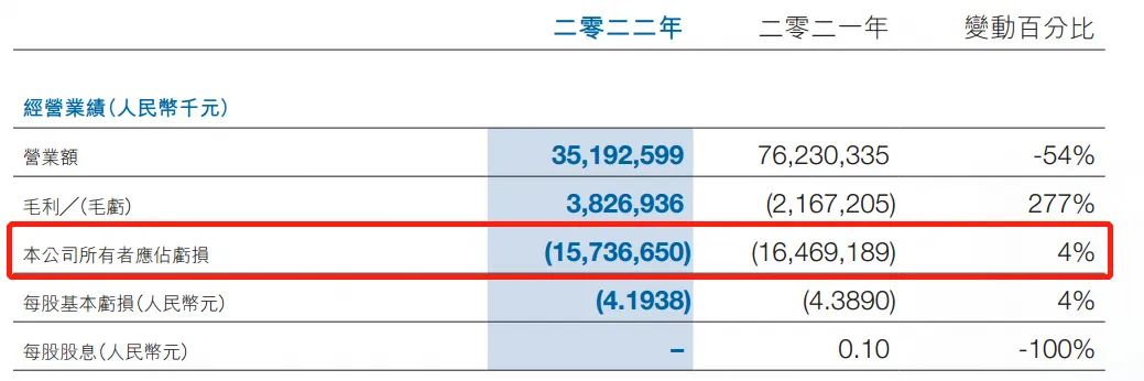 财务数据显示,2021年、2022年,富力地产均亏损超百亿元,归母净利润分别为164.7亿元、157.79亿元,两年累计亏损达到322亿元。