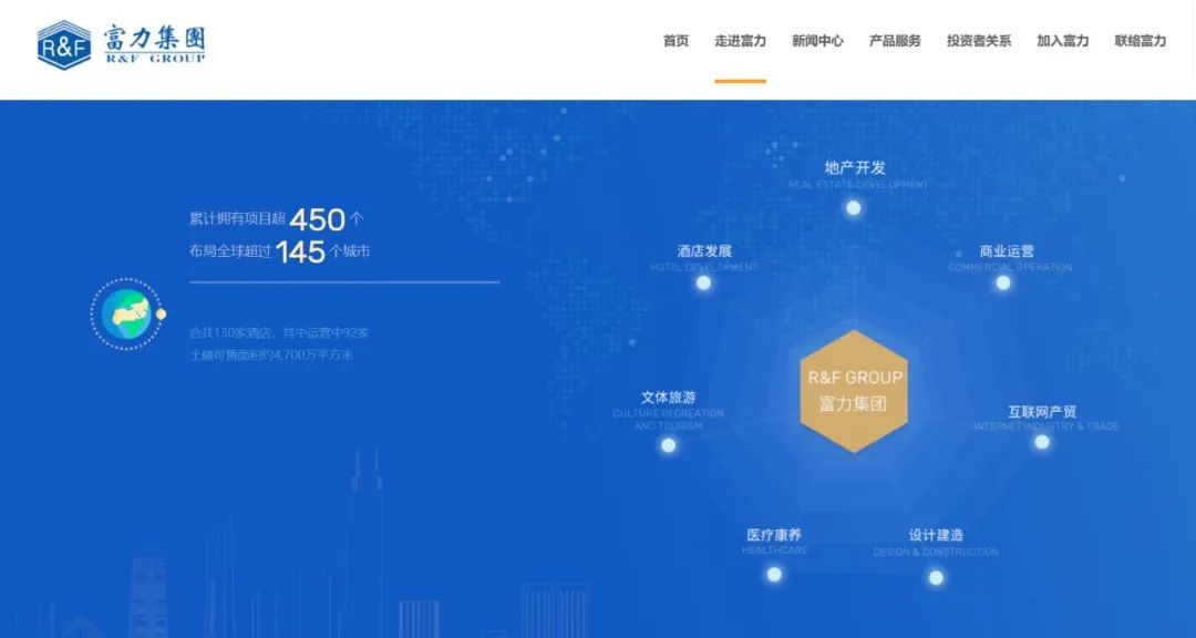 公司官网介绍,富力地产成立于1994年,总部位于广州,已成为以房地产开发为主营业务,同时在酒店发展、商业运营、文体旅游、互联网产贸、医疗康养及设计建造等领域多元发展的综合性集团。