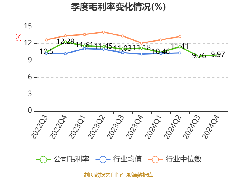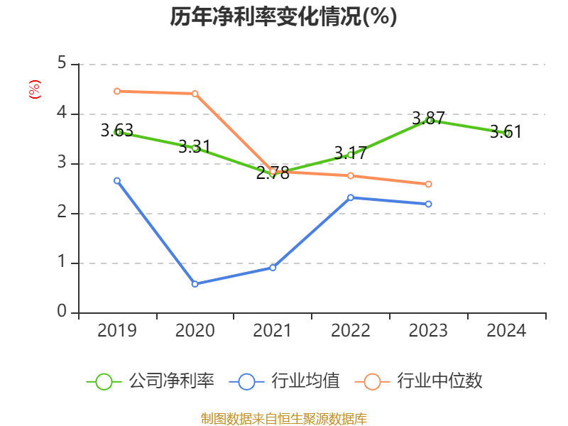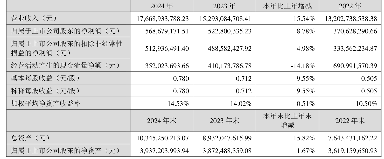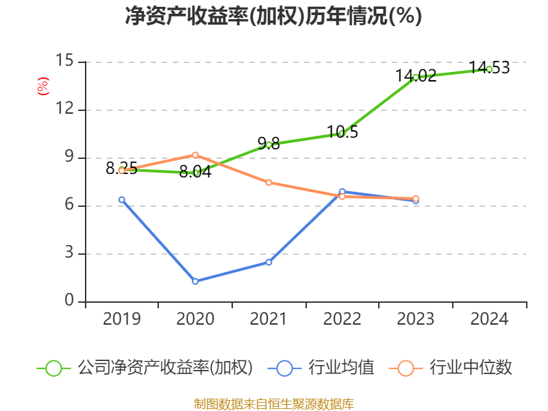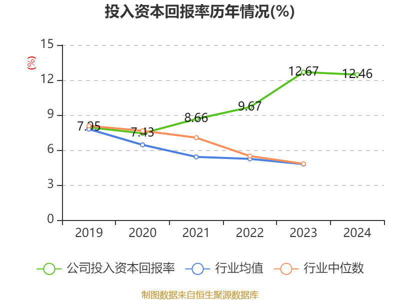 数据显示,2024年公司加权平均净资产收益率为14.53%,较上年同期上升0.51个百分点。公司2024年投入资本回报率为12.46%,较上年同期下降0.21个百分点。
