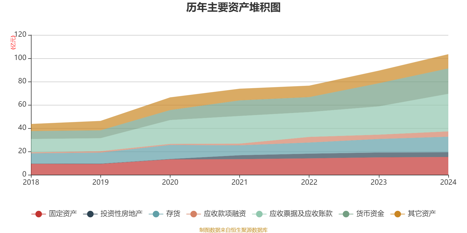 资产重大变化方面,截至2024年末,公司应收票据及应收账款较上年末增加32.48%,占公司总资产比重上升3.91个百分点;固定资产较上年末增加2.42%,占公司总资产比重下降1.93个百分点;货币资金较上年末增加10.23%,占公司总资产比重下降1.07个百分点;预付款项较上年末减少63.25%,占公司总资产比重下降0.89个百分点。