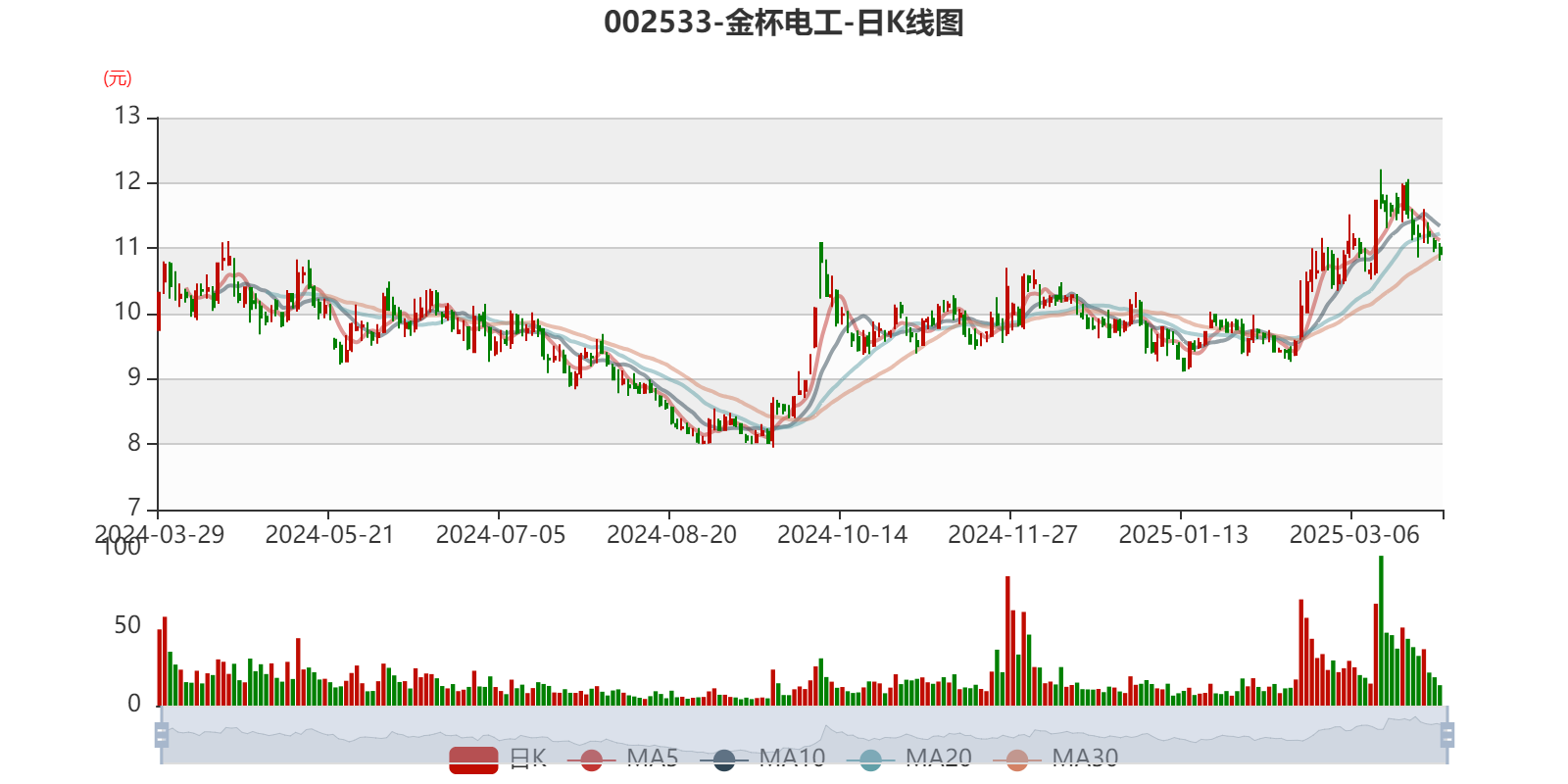 (原标题:金杯电工:2024年净利润同比增长8.78% 拟10派2.5元)