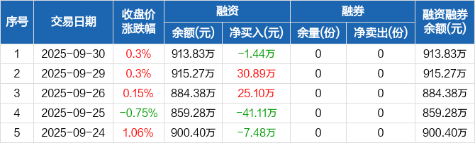 畜牧ETF融资融券信息显示,2025年9月30日融资净偿还1.44万元;融资余额913.83万元,较前一日下降0.16%。