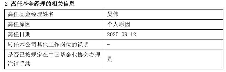 9月中旬,上银基金公告,吴伟由于个人原因离任上银恒睿养老目标日期2045三年持有混合发起式(FOF)、上银恒泰稳健养老目标一年持有混合发起式(FOF)的基金经理。