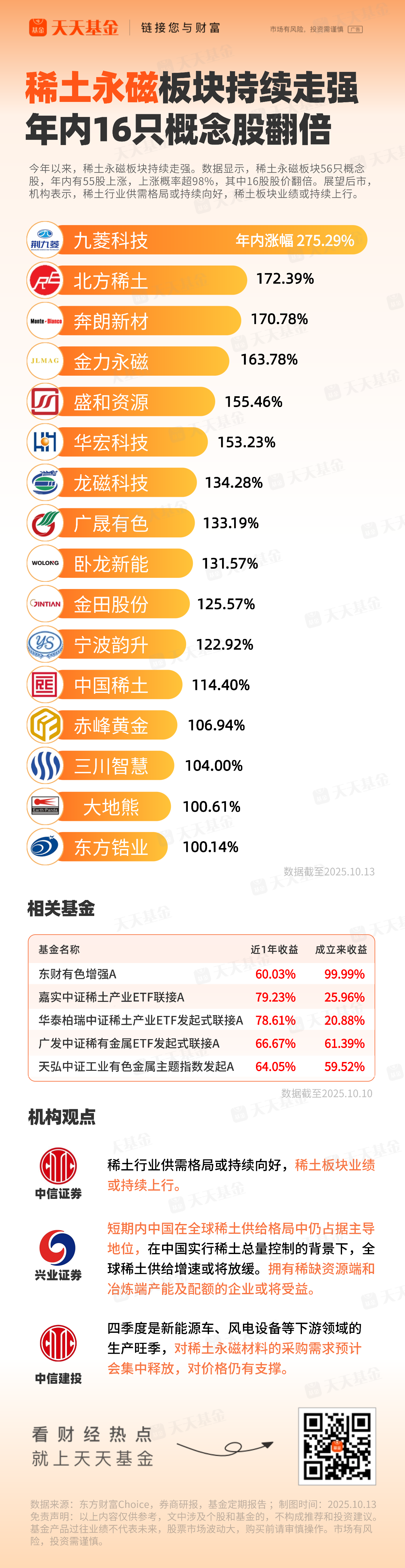 最高涨超275%!年内16只稀土永磁概念股翻倍 相关基金有哪些?