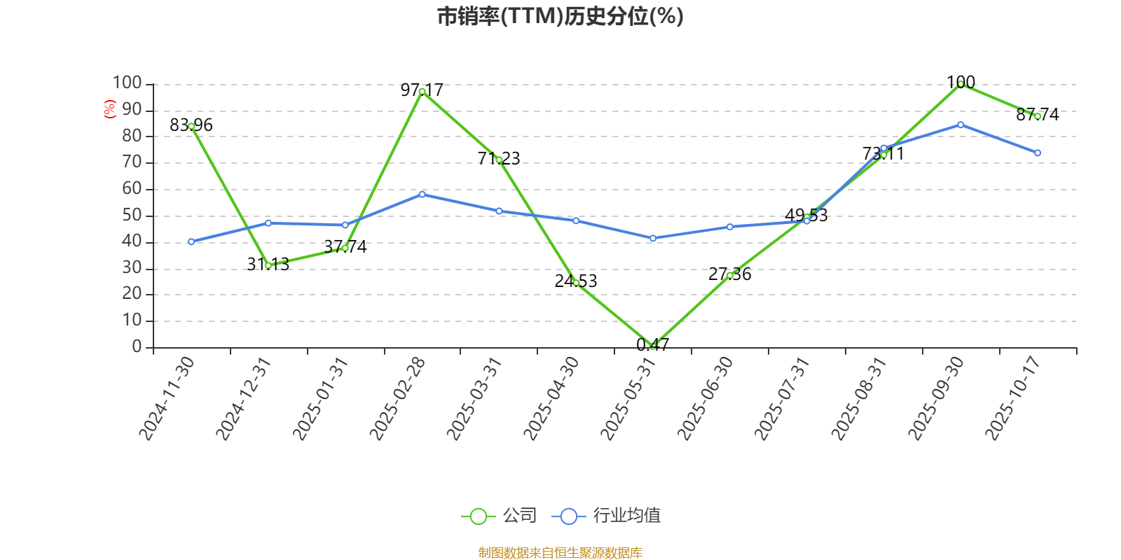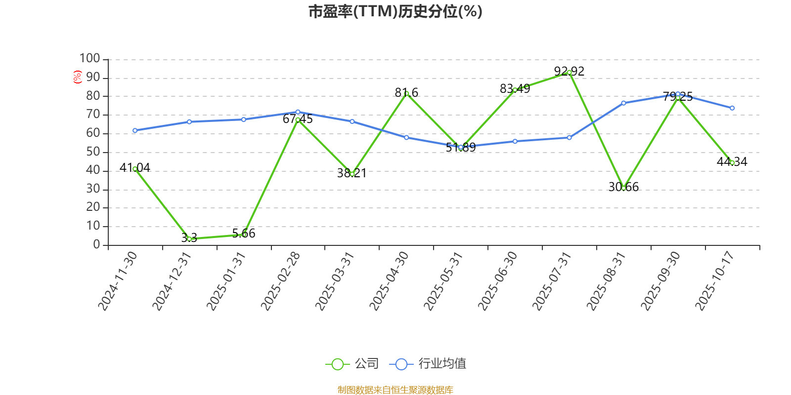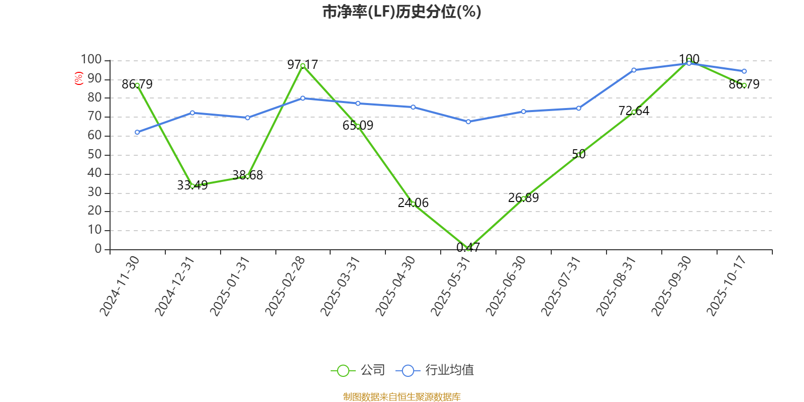市盈率、市净率为负时,不显示当期分位数,会导致折线图中断。