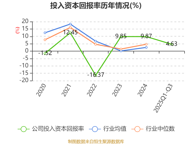 盈利能力方面, 2025年前三季度公司加权平均净资产收益率为5.07%,同比下降7.84个百分点。公司2025年前三季度投入资本回报率为4.63%,较上年同期下降6.17个百分点。