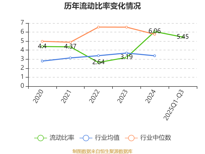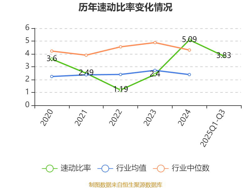 2025年前三季度,公司流动比率为5.45,速动比率为3.83。