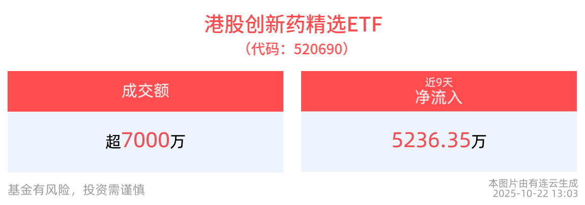 流动性方面,港股创新药精选ETF盘中换手17.49%,成交7936.13万元,市场交投活跃。拉长时间看,截至10月21日,港股创新药精选ETF近1年日均成交1.23亿元。