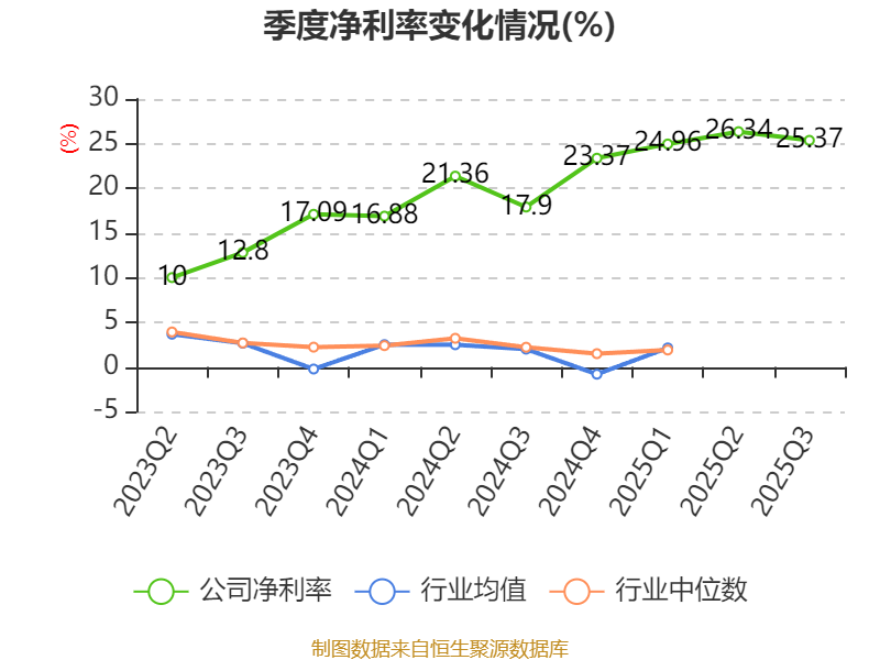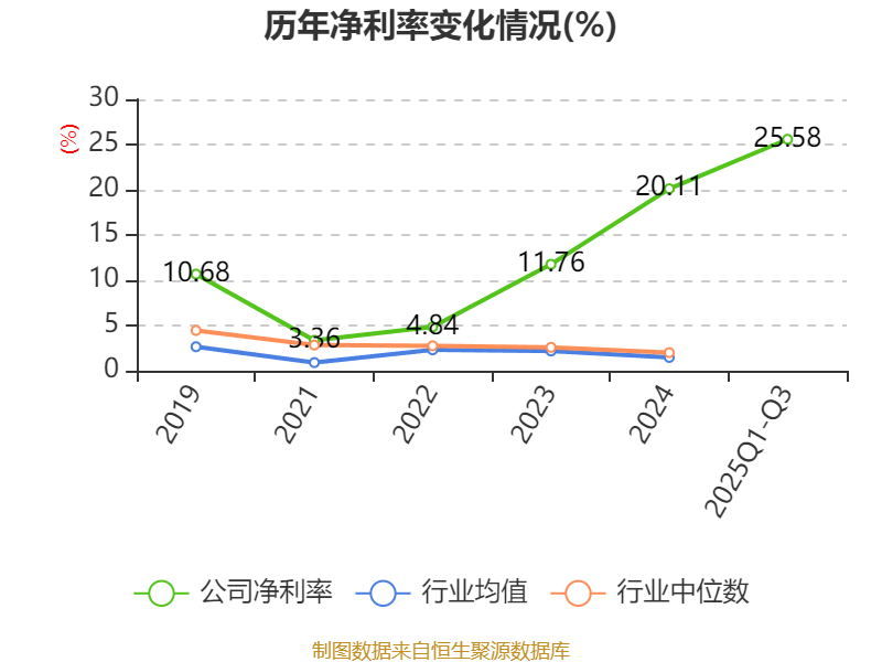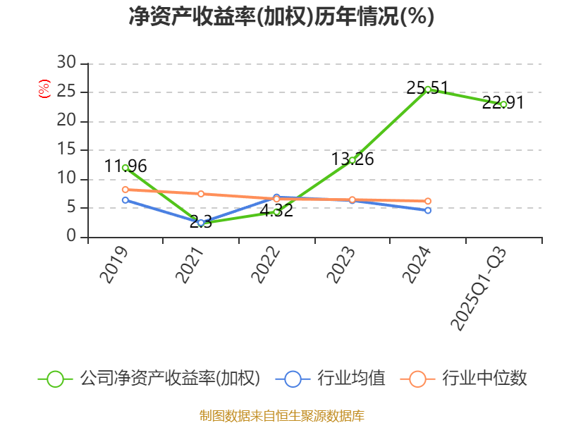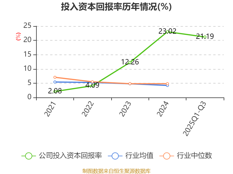 盈利能力方面, 2025年前三季度公司加权平均净资产收益率为22.91%,同比上升5个百分点。公司2025年前三季度投入资本回报率为21.19%,较上年同期下降10.4个百分点。