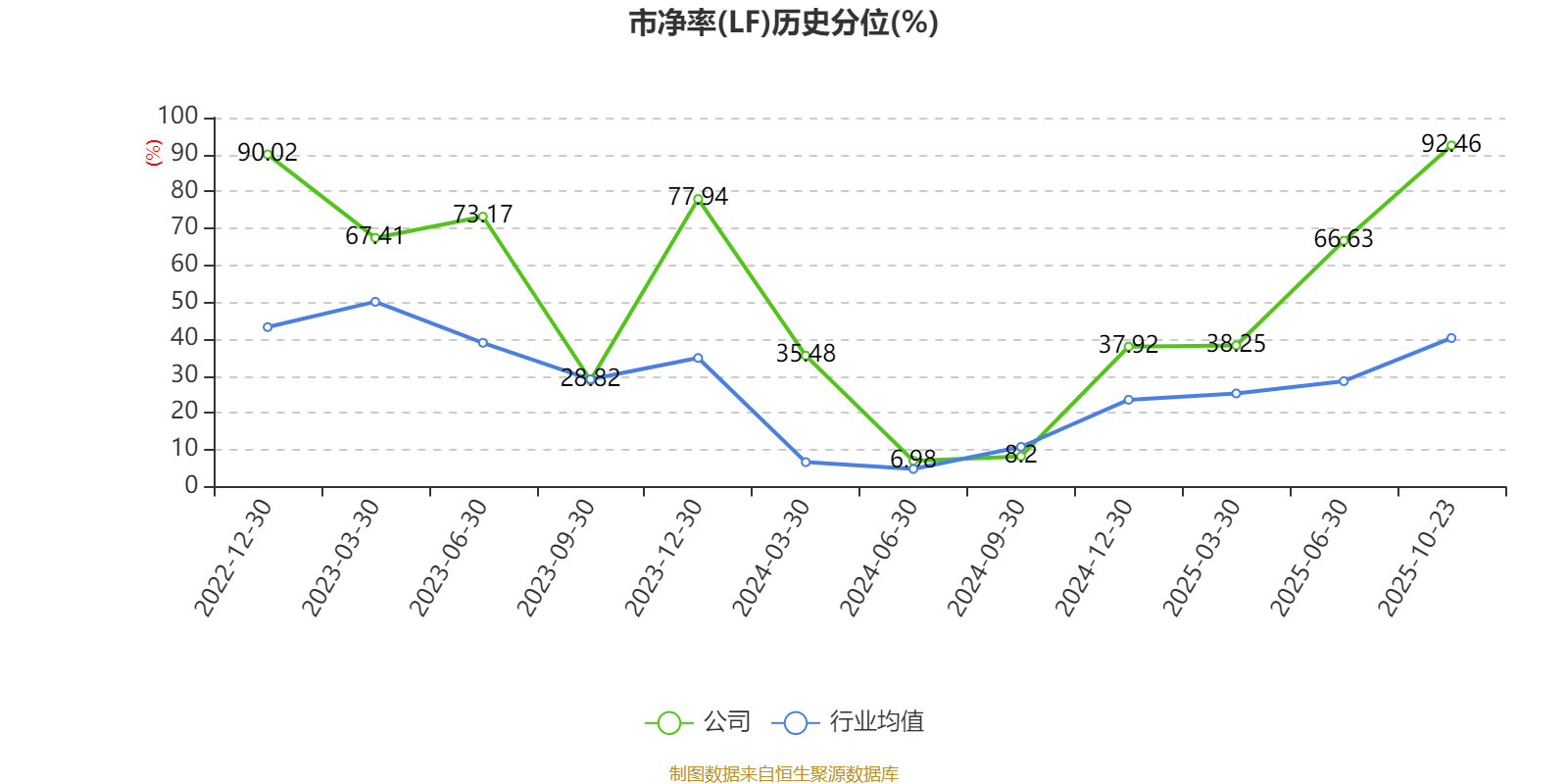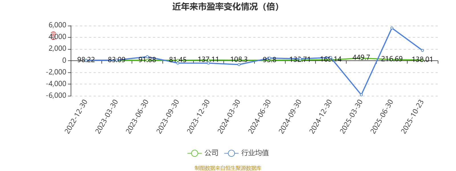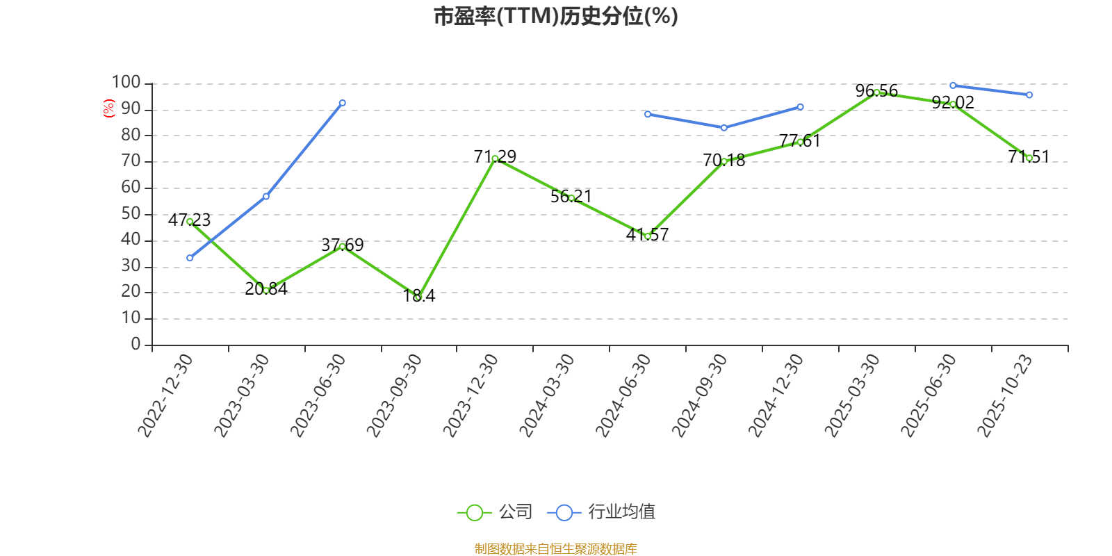 市盈率、市净率为负时,不显示当期分位数,会导致折线图中断。