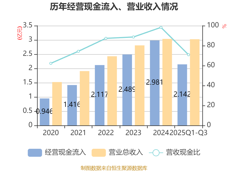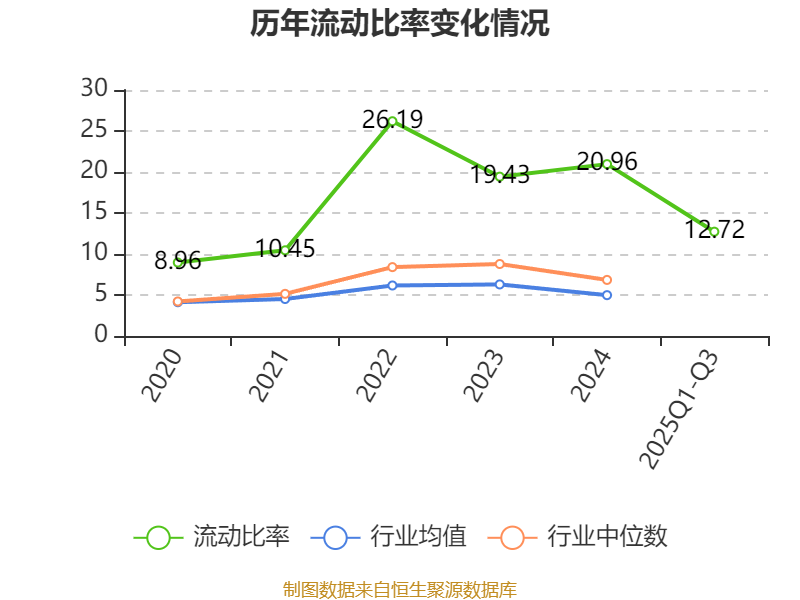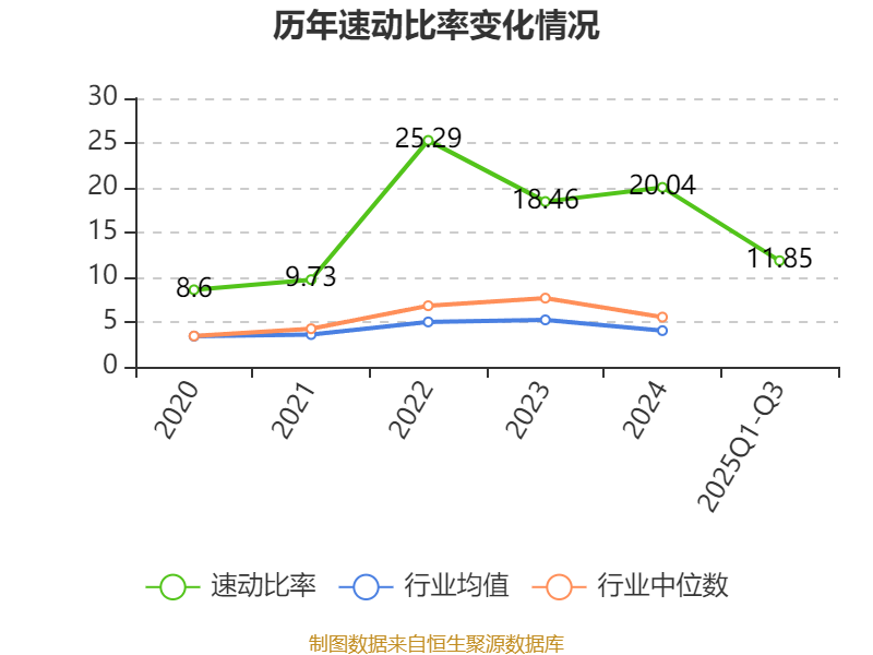 2025年前三季度,公司流动比率为12.72,速动比率为11.85。