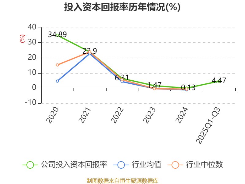盈利能力方面, 2025年前三季度公司加权平均净资产收益率为4.61%,同比上升3.93个百分点。公司2025年前三季度投入资本回报率为4.47%,较上年同期上升4.6个百分点。