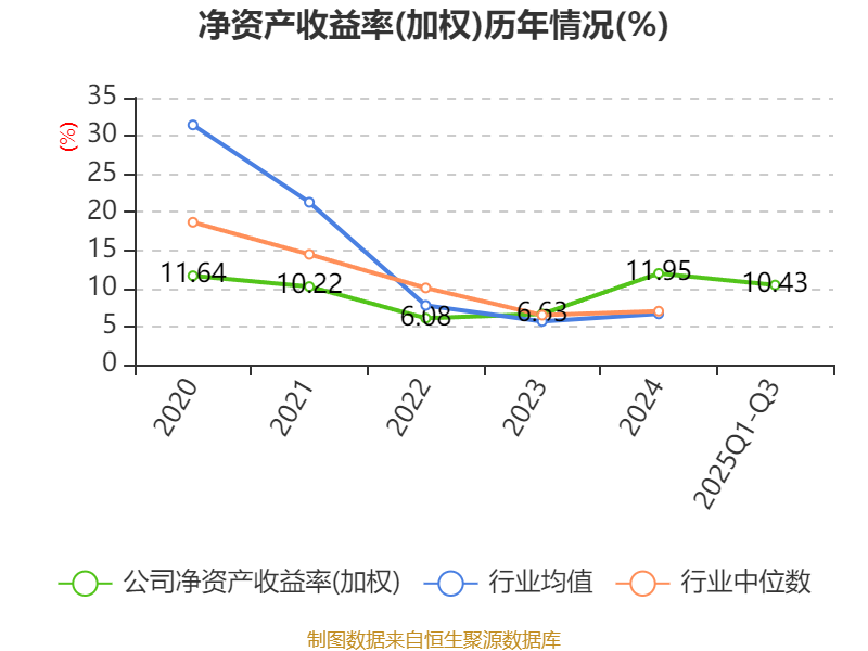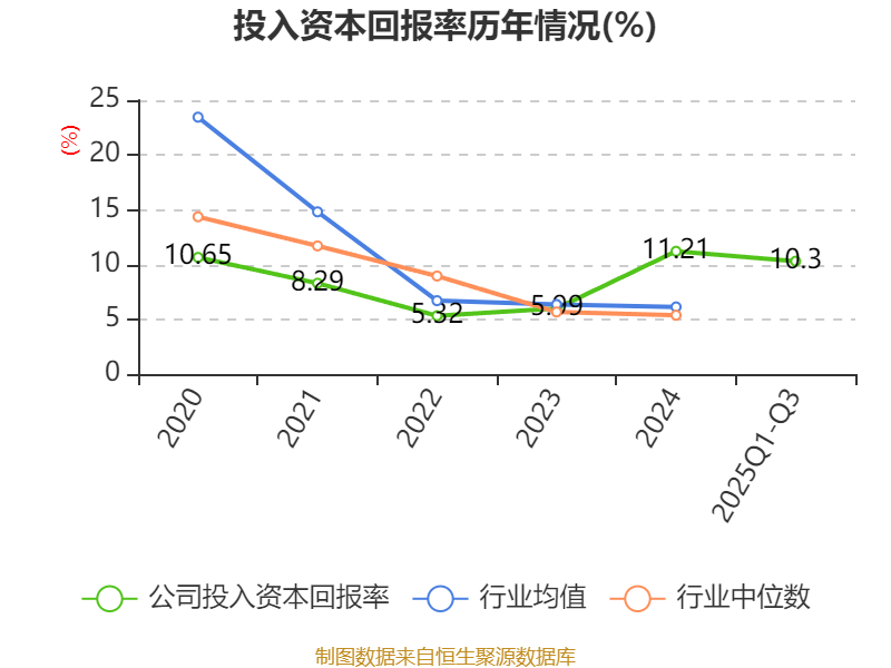 盈利能力方面, 2025年前三季度公司加权平均净资产收益率为10.43%,同比上升2.3个百分点。公司2025年前三季度投入资本回报率为10.3%,较上年同期上升2.57个百分点。