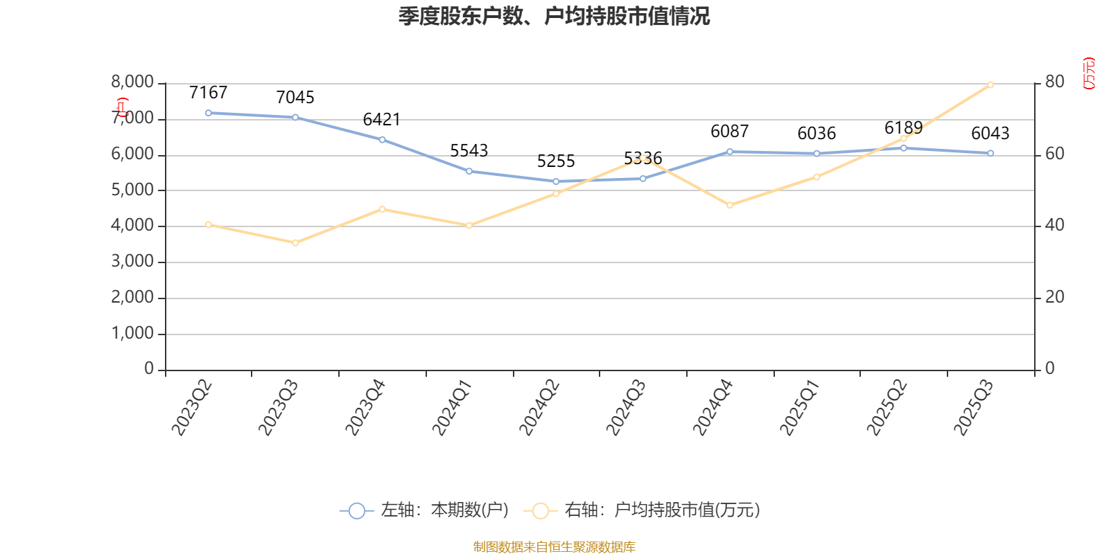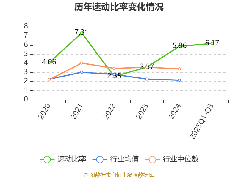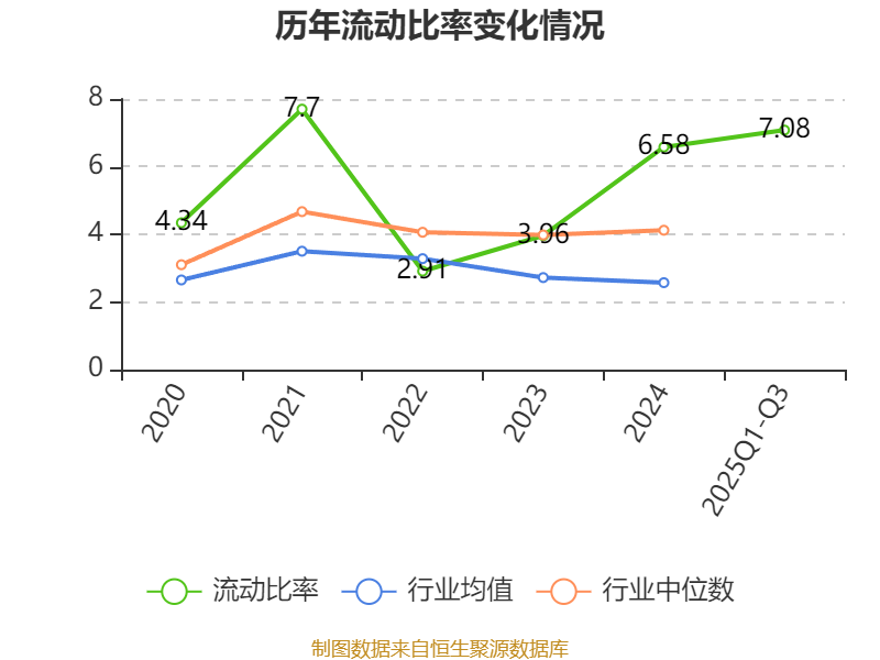 2025年前三季度,公司流动比率为7.08,速动比率为6.17。
