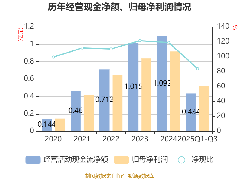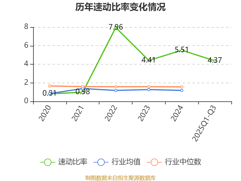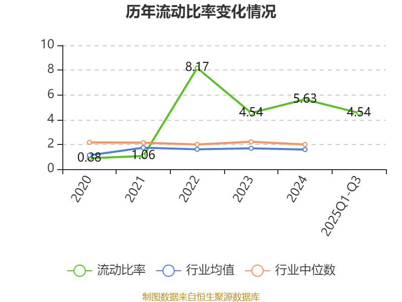 2025年前三季度,公司流动比率为4.54,速动比率为4.37。