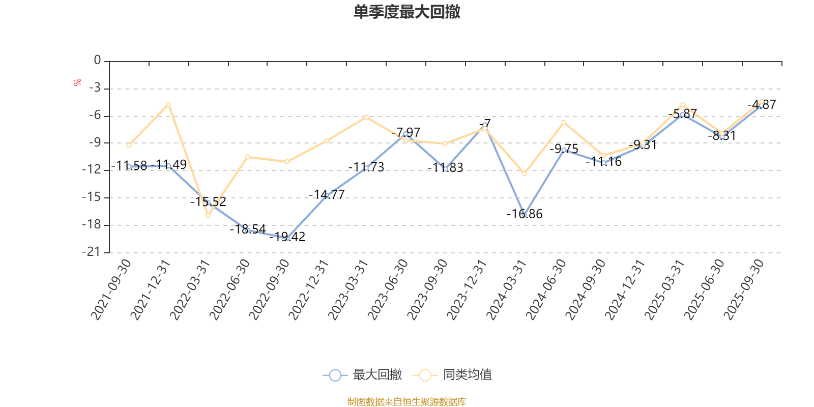 截至10月23日,基金近三年最大回撤为43.91%,同类可比基金排名102/117。单季度最大回撤出现在2022年三季度,为19.42%。