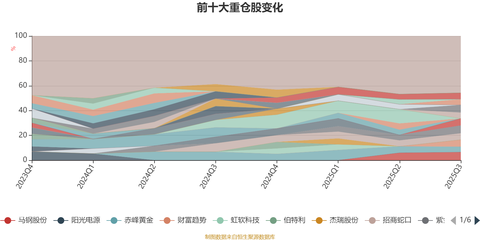 截至2025年三季度末,基金十大重仓股分别是马钢股份、紫金矿业、宇晶股份、佰维存储、财富趋势、招商蛇口、东鹏饮料、东方财富、海光信息、赤峰黄金。