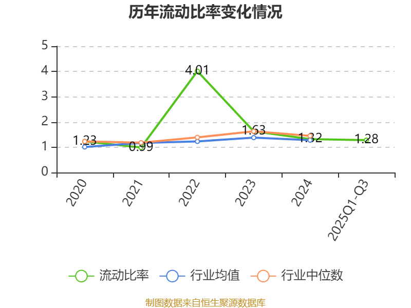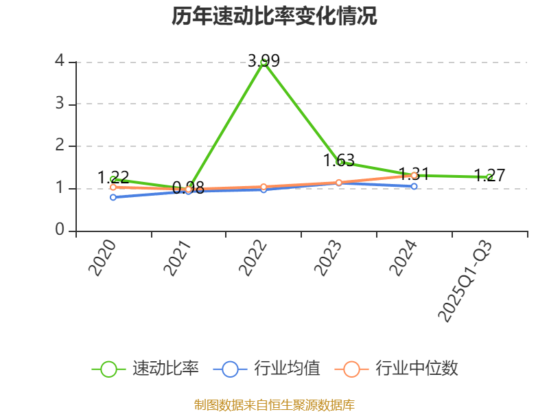 2025年前三季度,公司流动比率为1.28,速动比率为1.27。