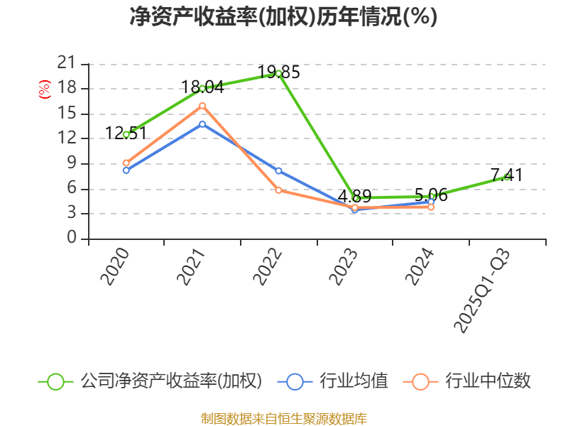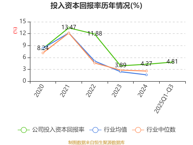 盈利能力方面, 2025年前三季度公司加权平均净资产收益率为7.41%,同比上升4.94个百分点。公司2025年前三季度投入资本回报率为4.81%,较上年同期上升2.61个百分点。
