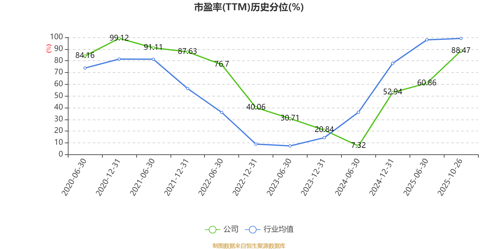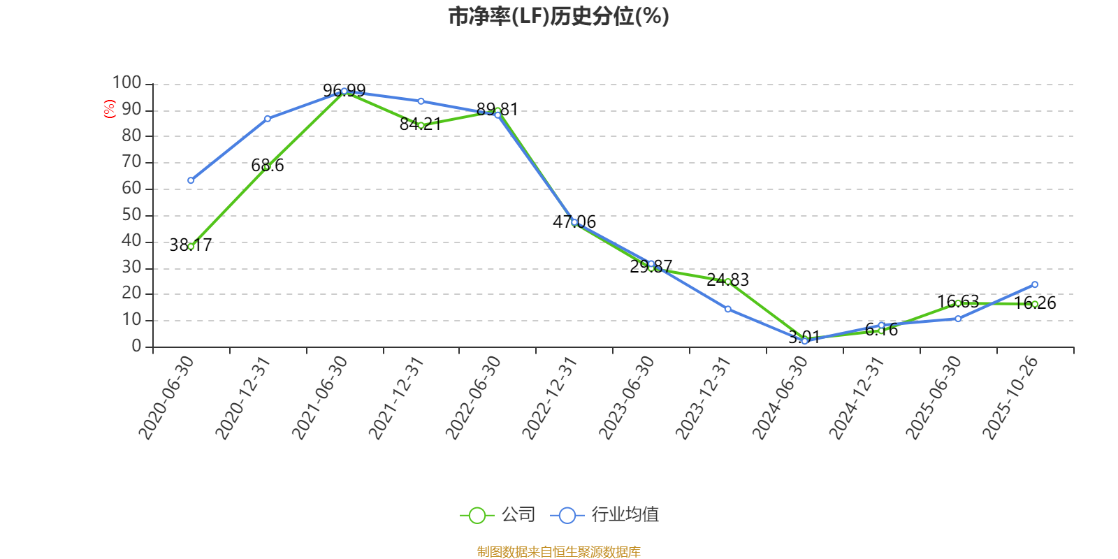 市盈率、市净率为负时,不显示当期分位数,会导致折线图中断。
