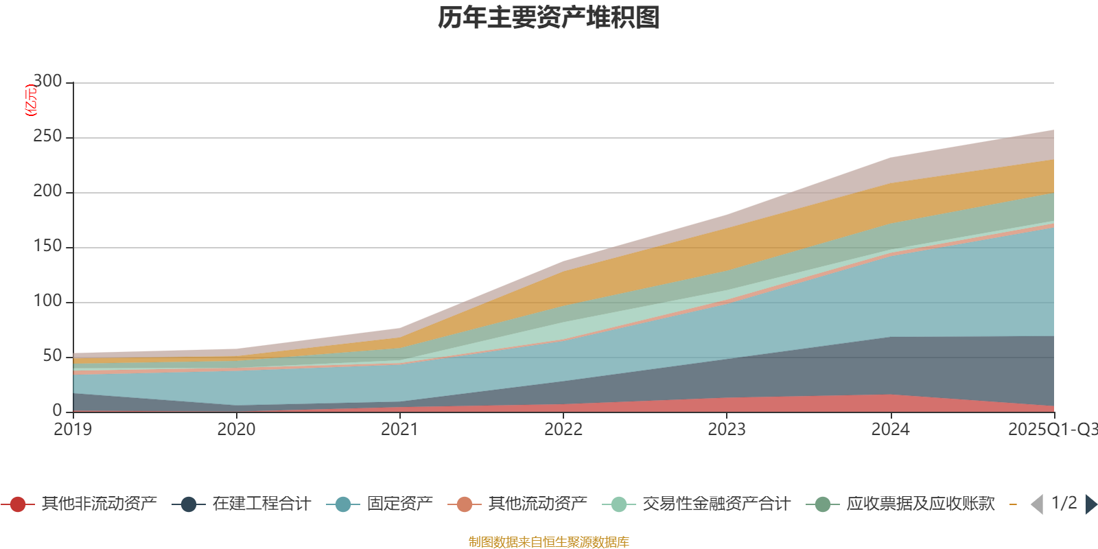 资产重大变化方面,截至2025年三季度末,公司固定资产较上年末增加34.83%,占公司总资产比重上升6.83个百分点;其他非流动资产较上年末减少67.47%,占公司总资产比重下降4.84个百分点;货币资金较上年末减少17.46%,占公司总资产比重下降4.07个百分点;在建工程合计较上年末增加21.82%,占公司总资产比重上升2.22个百分点。