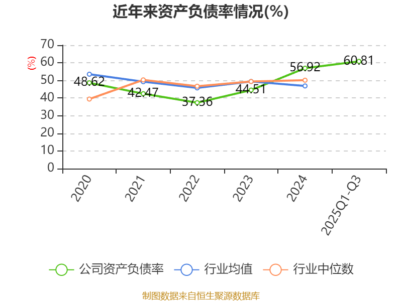 负债重大变化方面,截至2025年三季度末,公司短期借款较上年末增加29.81%,占公司总资产比重上升2.4个百分点;一年内到期的非流动负债较上年末增加76.98%,占公司总资产比重上升2.22个百分点;长期借款较上年末增加4.38%,占公司总资产比重下降1.48个百分点;长期应付款合计较上年末增加68.86%,占公司总资产比重上升1.14个百分点。