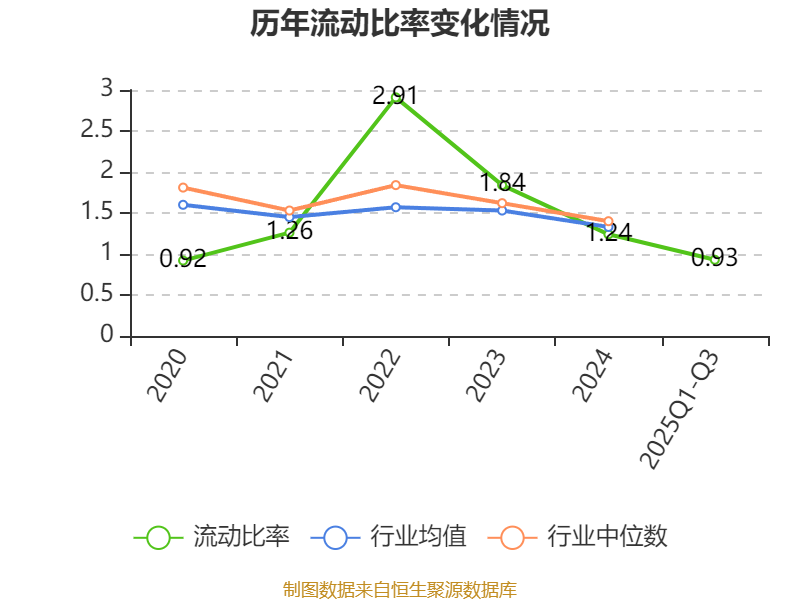 2025年前三季度,公司流动比率为0.93,速动比率为0.84。