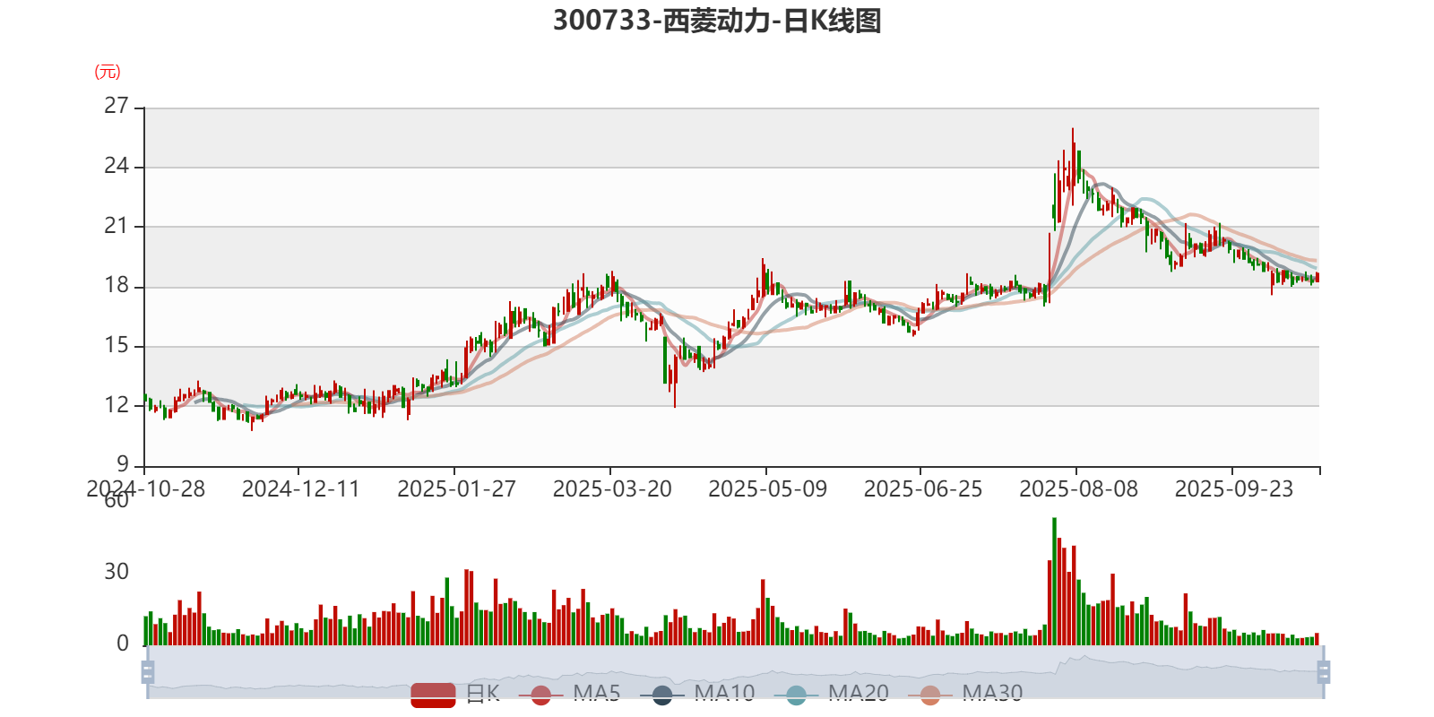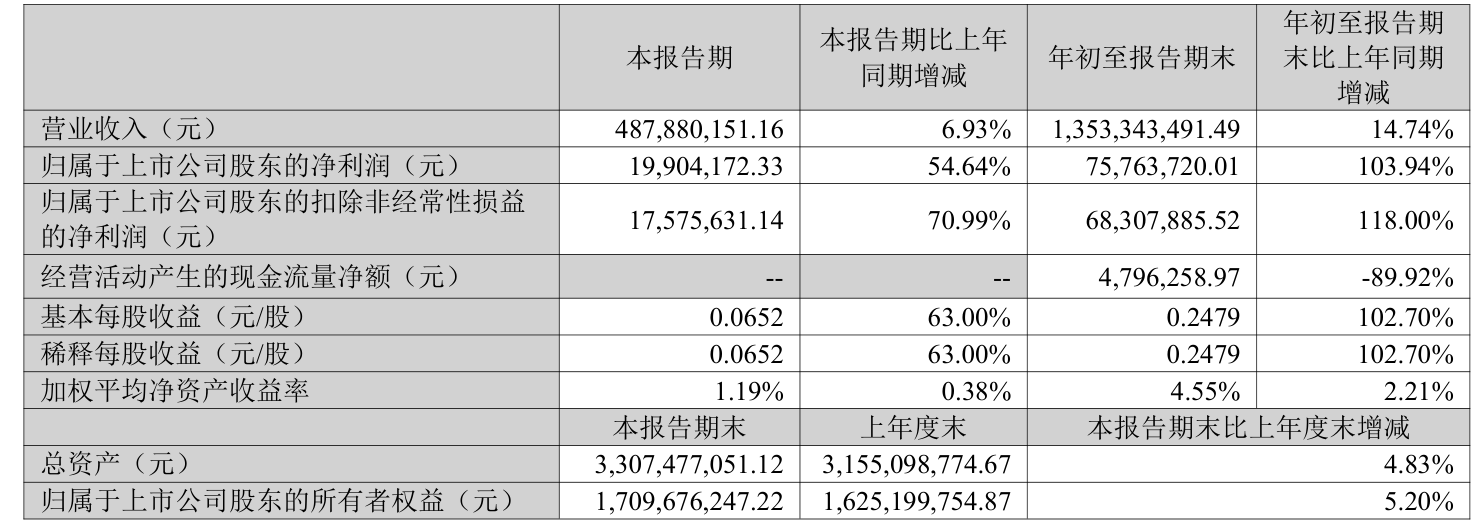 中证智能财讯西菱动力(300733)10月27日披露2025年第三季度报告。前三季度公司实现营业总收入13.53亿元,同比增长14.74%;归母净利润7576.37万元,同比增长103.94%;扣非净利润6830.79万元,同比增长118.00%;经营活动产生的现金流量净额为479.63万元,同比下降89.92%;报告期内,西菱动力基本每股收益为0.2479元,加权平均净资产收益率为4.55%。