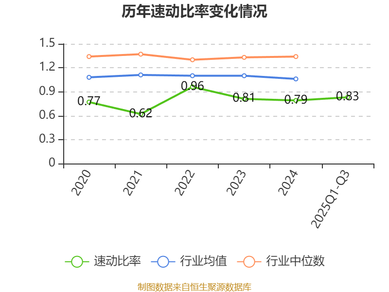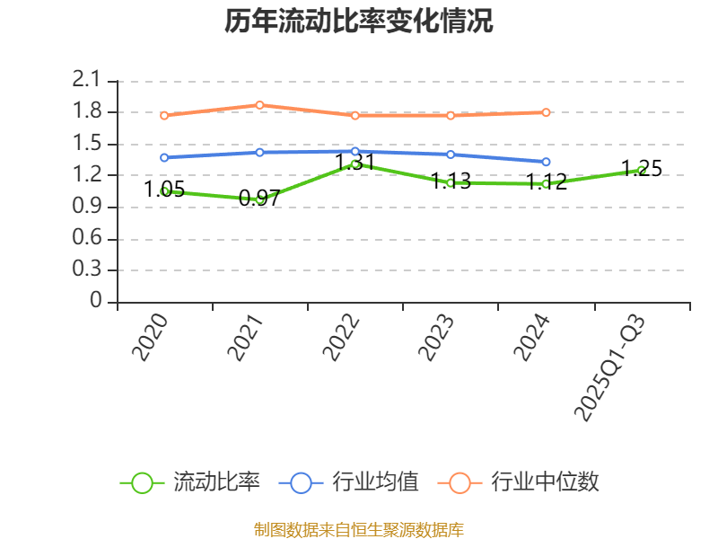 2025年前三季度,公司流动比率为1.25,速动比率为0.83。