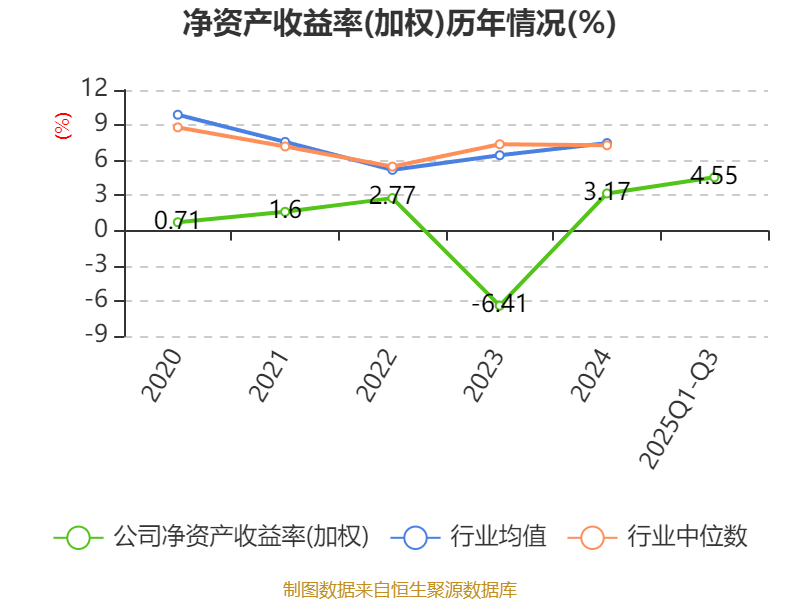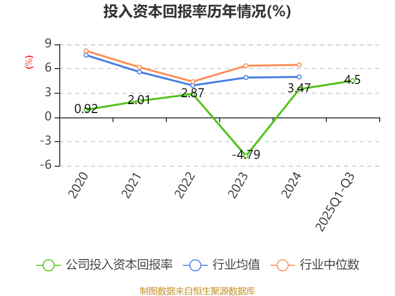 盈利能力方面, 2025年前三季度公司加权平均净资产收益率为4.55%,同比上升2.21个百分点。公司2025年前三季度投入资本回报率为4.5%,较上年同期上升1.8个百分点。