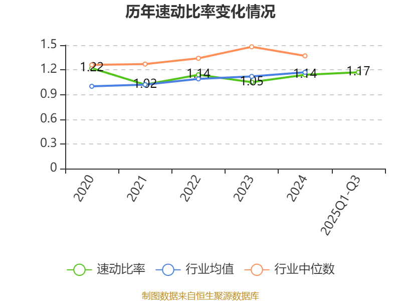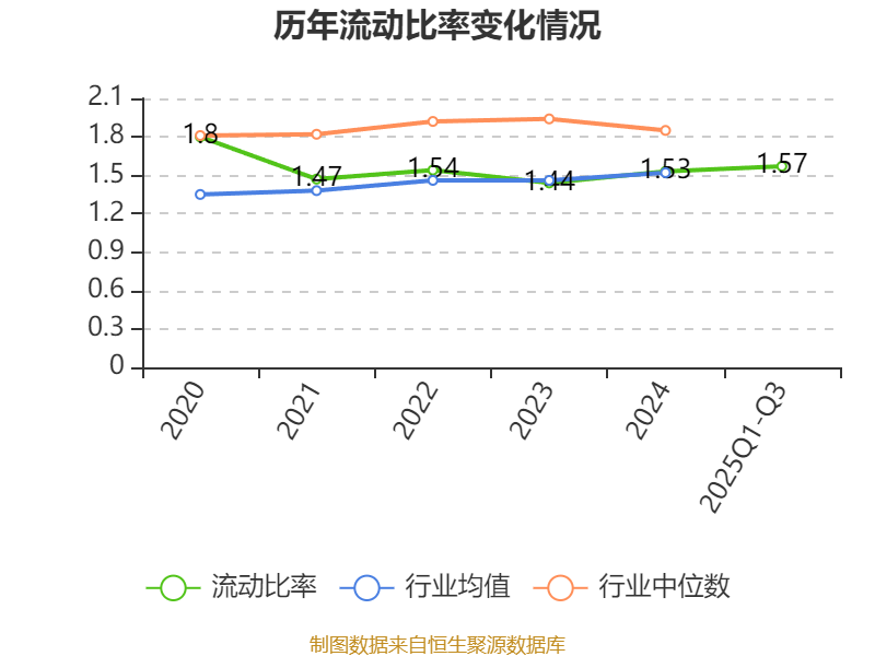 2025年前三季度,公司流动比率为1.57,速动比率为1.17。
