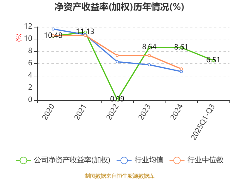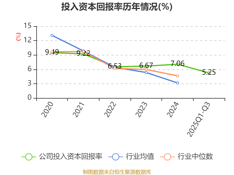 盈利能力方面, 2025年前三季度公司加权平均净资产收益率为6.51%,同比下降0.26个百分点。公司2025年前三季度投入资本回报率为5.25%,较上年同期下降0.19个百分点。