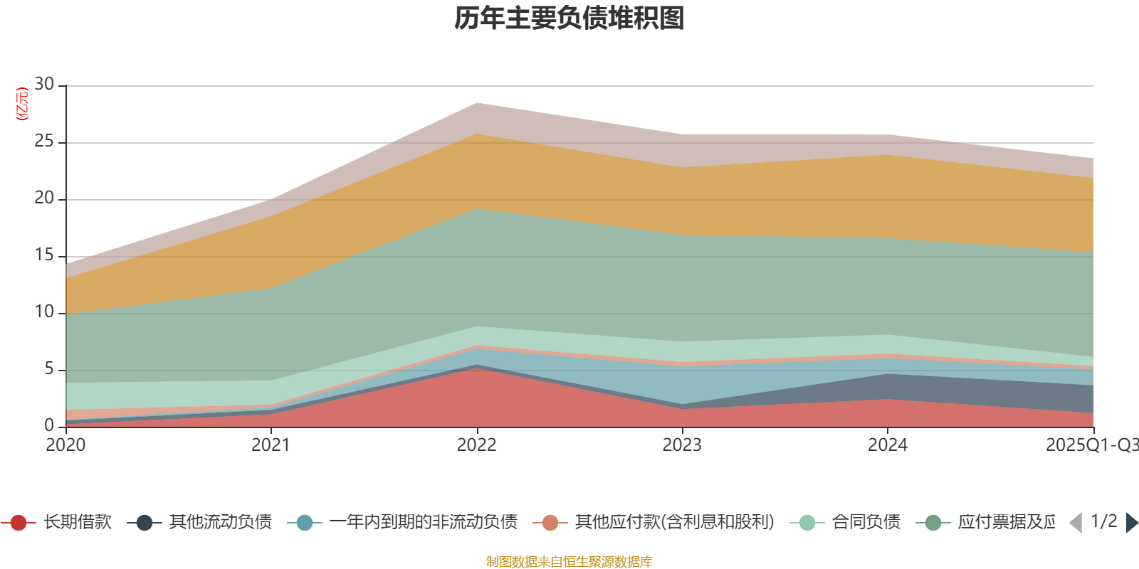 负债重大变化方面,截至2025年三季度末,公司长期借款较上年末减少50.57%,占公司总资产比重下降2个百分点;合同负债较上年末减少51.18%,占公司总资产比重下降1.39个百分点;应付票据及应付账款较上年末增加8.41%,占公司总资产比重上升1.29个百分点;短期借款较上年末减少10.77%,占公司总资产比重下降1.22个百分点。