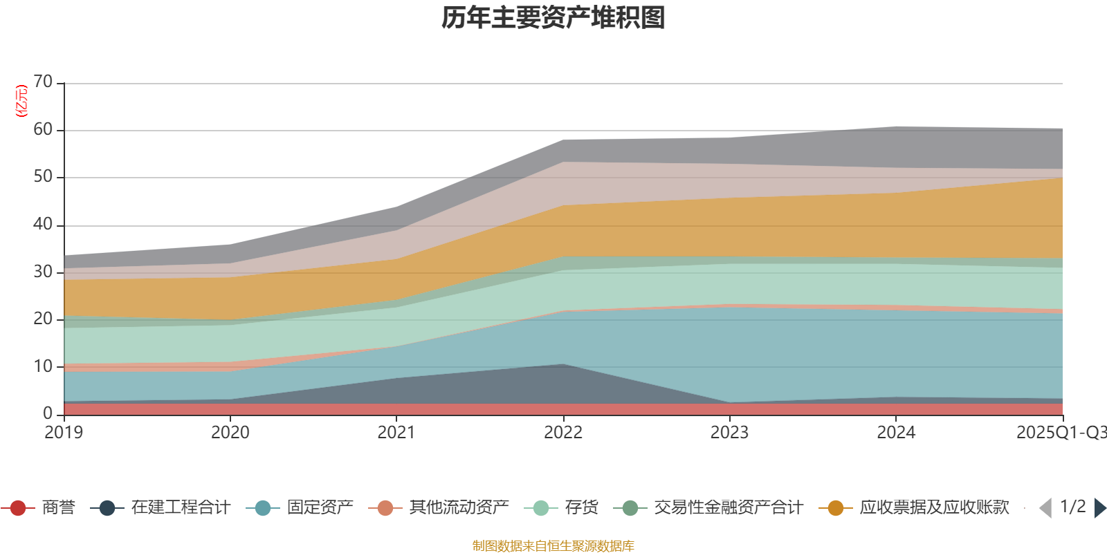 资产重大变化方面,截至2025年三季度末,公司货币资金较上年末减少64.81%,占公司总资产比重下降5.63个百分点;应收票据及应收账款较上年末增加24.11%,占公司总资产比重上升5.62个百分点;交易性金融资产合计较上年末增加54.27%,占公司总资产比重上升1.21个百分点;应收款项融资较上年末减少28.83%,占公司总资产比重下降0.72个百分点。