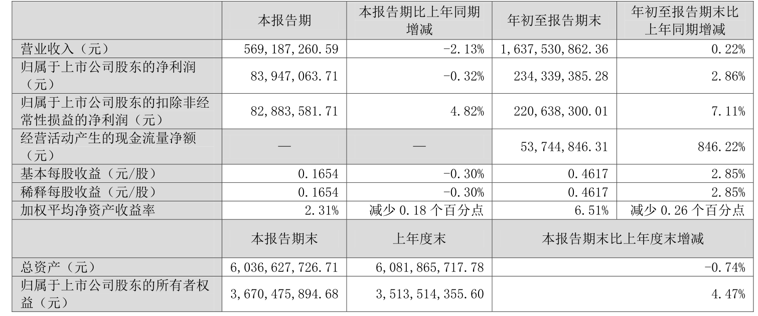 中证智能财讯江苏神通(002438)10月27日披露2025年第三季度报告。前三季度公司实现营业总收入16.38亿元,同比增长0.22%;归母净利润2.34亿元,同比增长2.86%;扣非净利润2.21亿元,同比增长7.11%;经营活动产生的现金流量净额为5374.48万元,同比增长846.22%;报告期内,江苏神通基本每股收益为0.4617元,加权平均净资产收益率为6.51%。