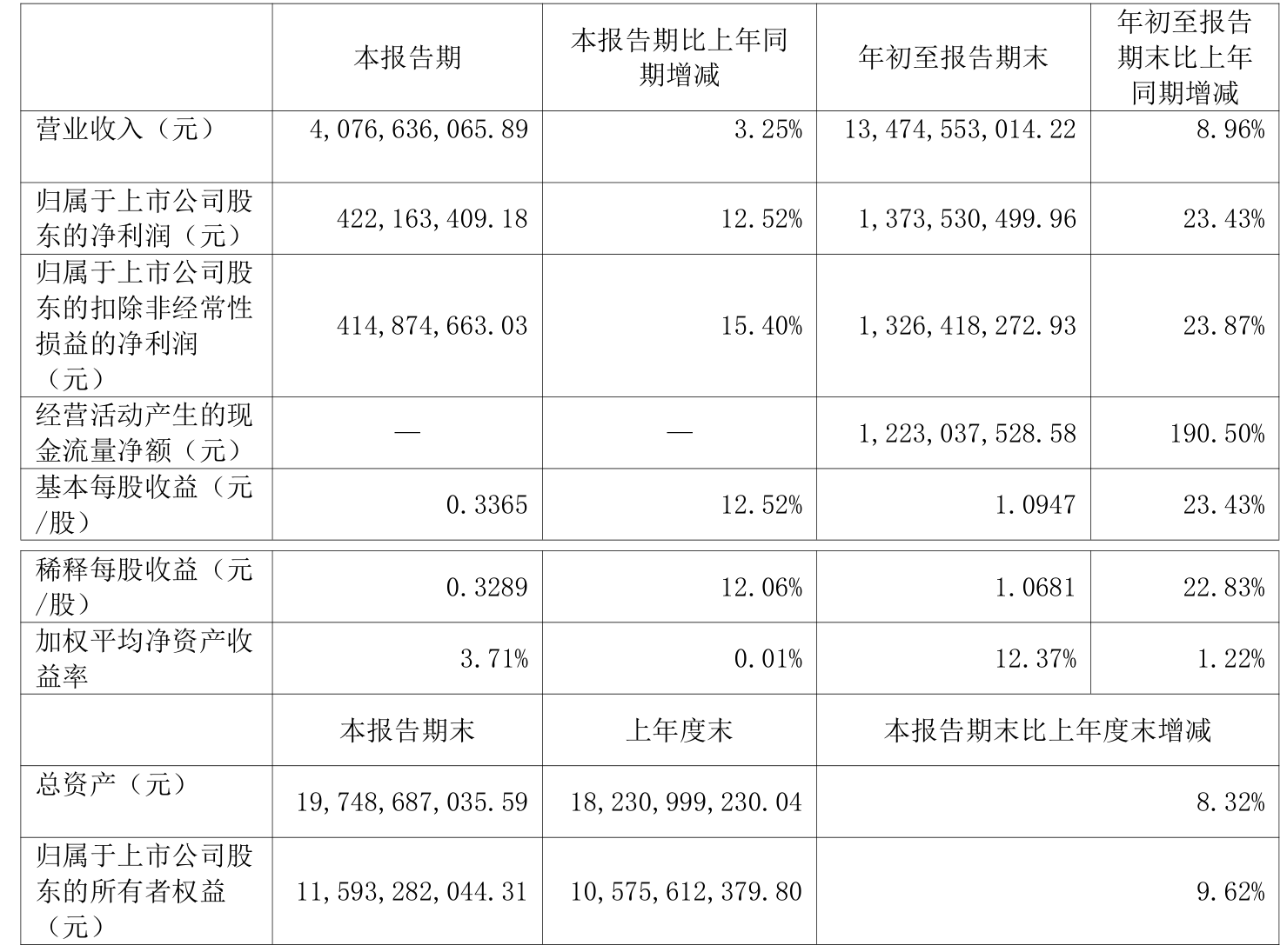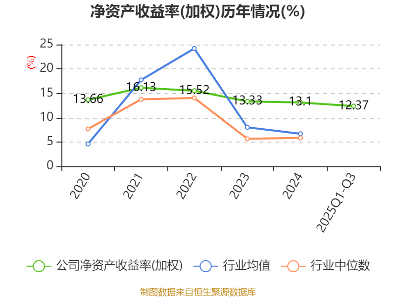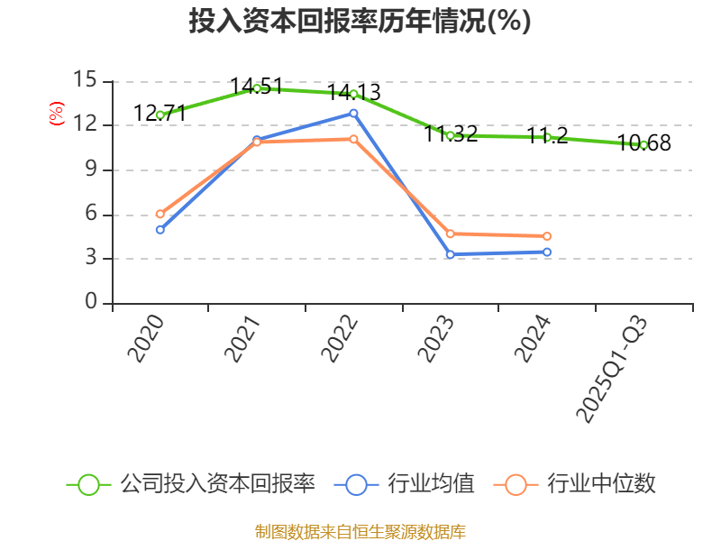 盈利能力方面, 2025年前三季度公司加权平均净资产收益率为12.37%,同比上升1.22个百分点。公司2025年前三季度投入资本回报率为10.68%,较上年同期上升1.12个百分点。