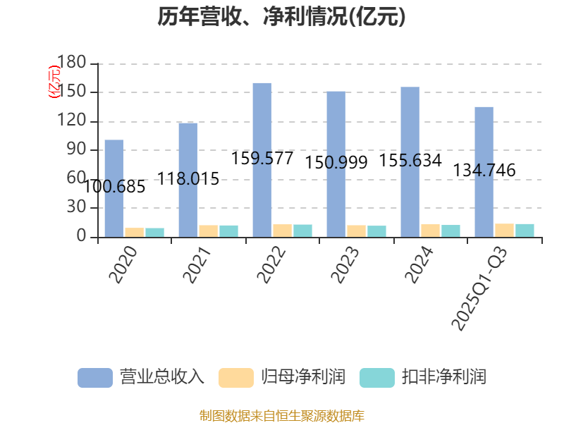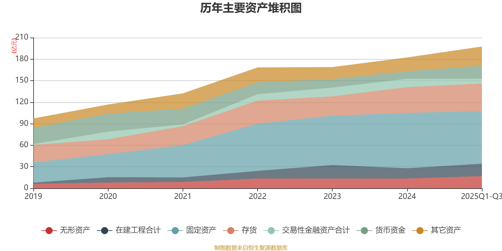 资产重大变化方面,截至2025年三季度末,公司固定资产较上年末减少4.93%,占公司总资产比重下降5.18个百分点;货币资金较上年末增加73.64%,占公司总资产比重上升3.51个百分点;交易性金融资产合计较上年末减少43.16%,占公司总资产比重下降3.03个百分点;预付款项较上年末增加116.94%,占公司总资产比重上升1.9个百分点。