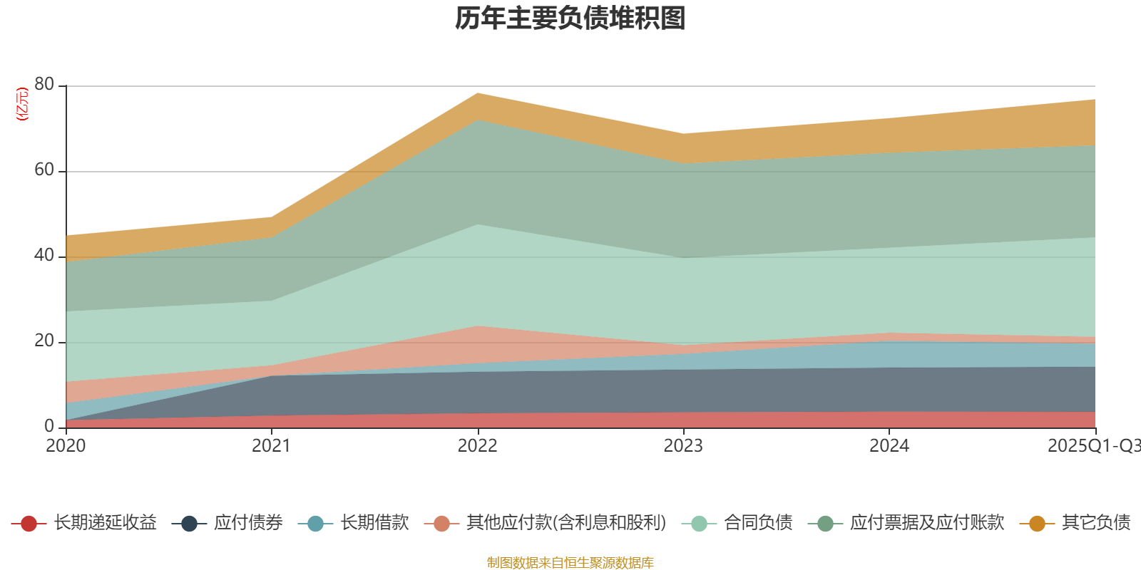 负债重大变化方面,截至2025年三季度末,公司应付票据及应付账款较上年末减少3.19%,占公司总资产比重下降1.3个百分点;合同负债较上年末增加17.1%,占公司总资产比重上升0.88个百分点;长期借款较上年末减少14.48%,占公司总资产比重下降0.73个百分点;一年内到期的非流动负债较上年末增加174%,占公司总资产比重上升0.42个百分点。