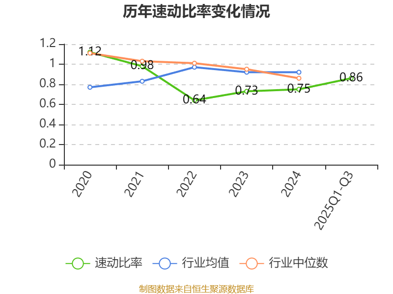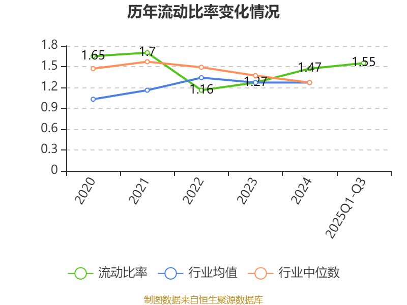 2025年前三季度,公司流动比率为1.55,速动比率为0.86。