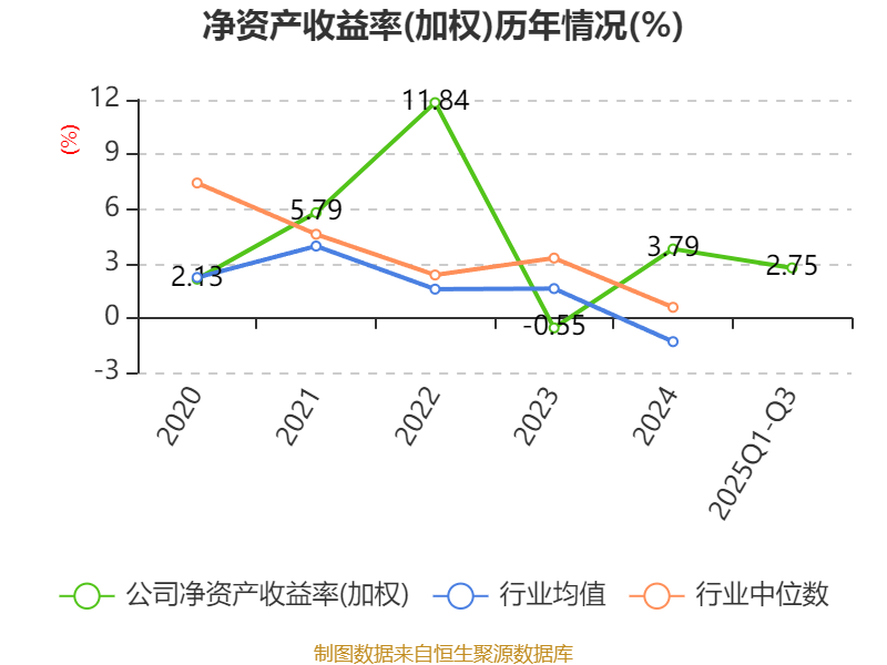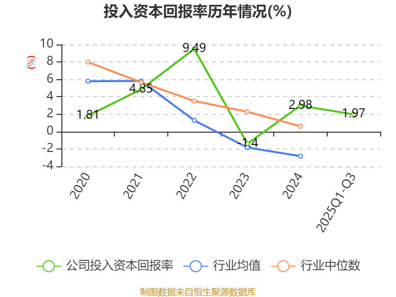 盈利能力方面, 2025年前三季度公司加权平均净资产收益率为2.75%,同比下降0.01个百分点。公司2025年前三季度投入资本回报率为1.97%,较上年同期下降0.21个百分点。