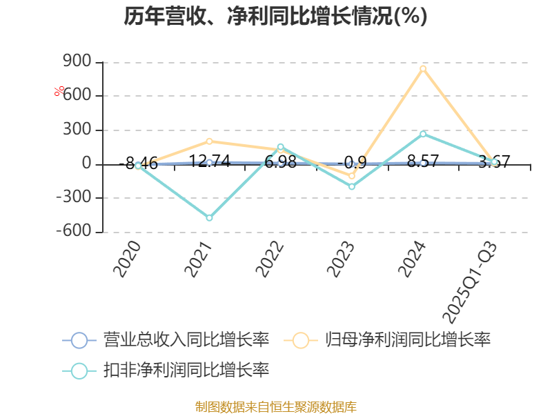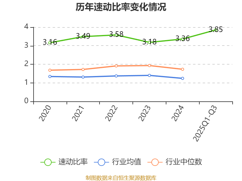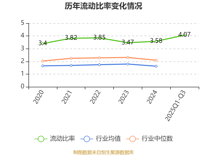 2025年前三季度,公司流动比率为4.07,速动比率为3.85。