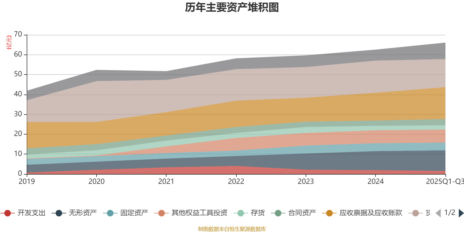 资产重大变化方面,截至2025年三季度末,公司货币资金较上年末减少12.82%,占公司总资产比重下降4.51个百分点;交易性金融资产合计占公司总资产的4.33%,上年末为0;应收票据及应收账款较上年末增加15.19%,占公司总资产比重上升2.03个百分点;开发支出较上年末减少21.56%,占公司总资产比重下降0.8个百分点。