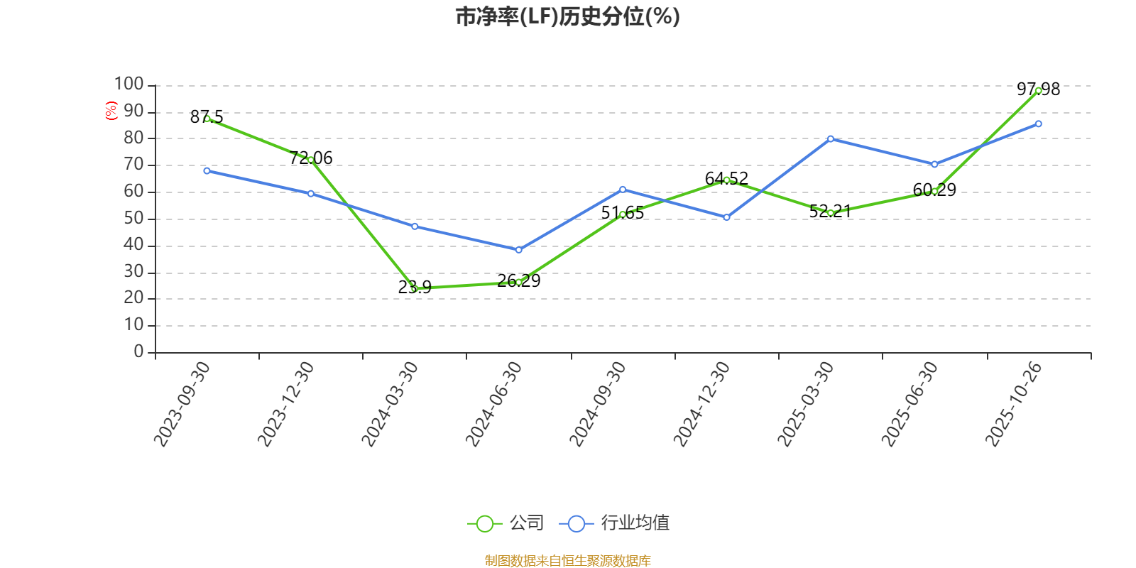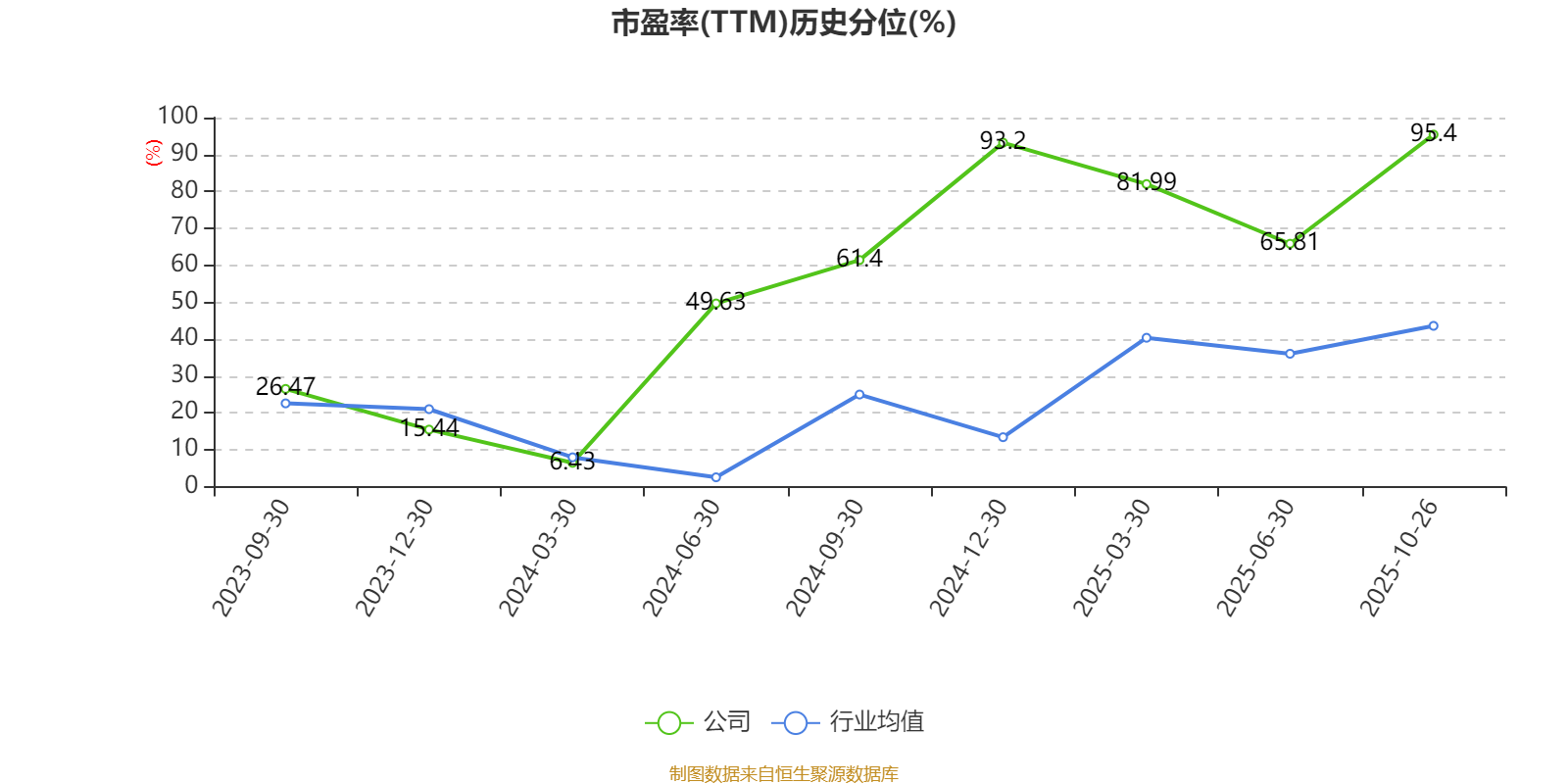 市盈率、市净率为负时,不显示当期分位数,会导致折线图中断。