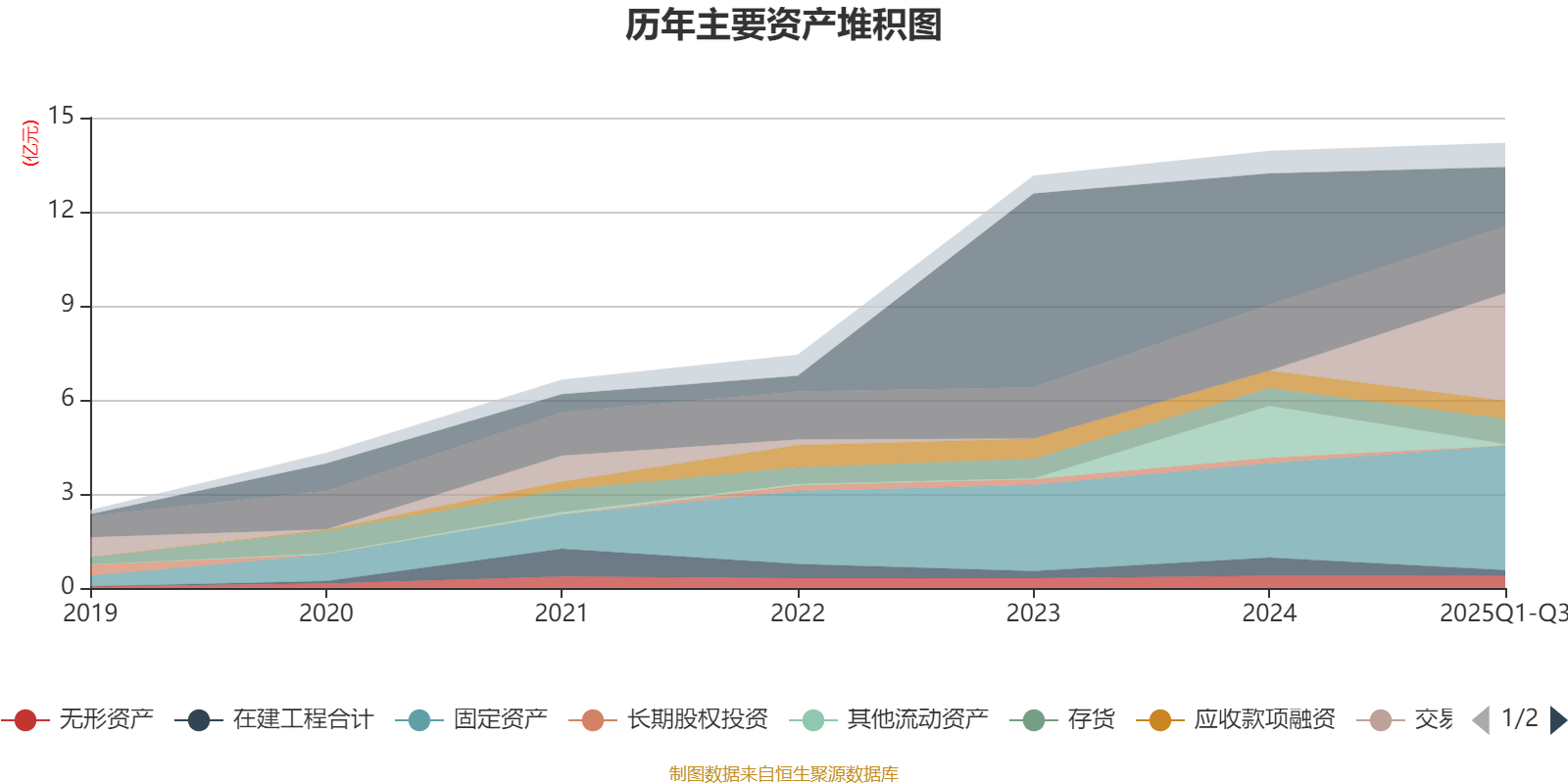 资产重大变化方面,截至2025年三季度末,公司交易性金融资产合计较上年末增加56985213.42%,占公司总资产比重上升24.16个百分点;货币资金较上年末减少54.94%,占公司总资产比重下降16.72个百分点;其他流动资产较上年末减少96.97%,占公司总资产比重下降11.51个百分点;固定资产较上年末增加31.86%,占公司总资产比重上升6.35个百分点。