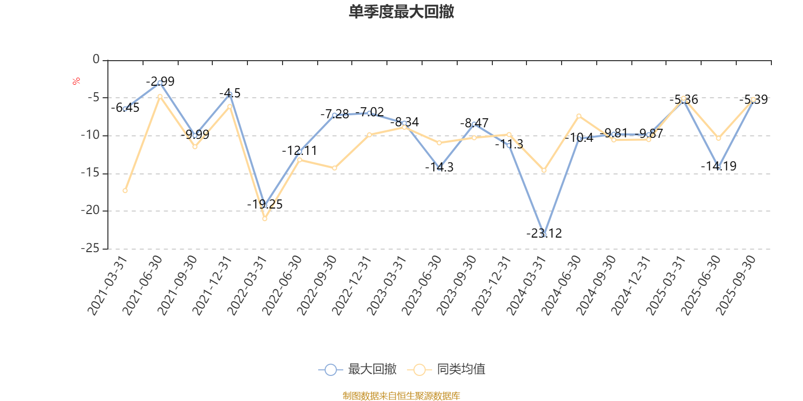 截至10月24日,基金近三年最大回撤为36.74%,同类可比基金排名78/125。单季度最大回撤出现在2024年一季度,为23.12%。