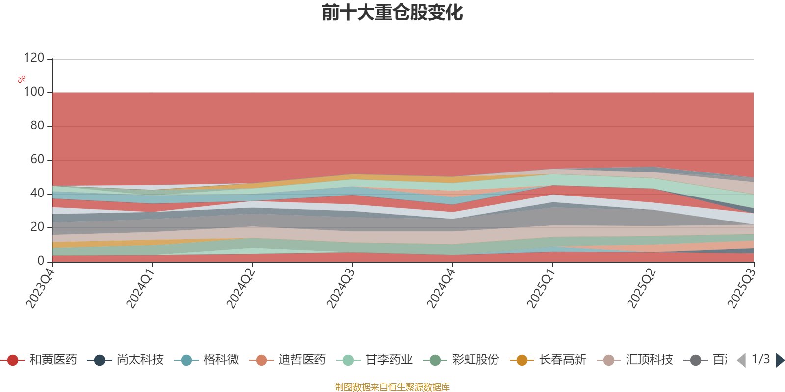 截至2025年三季度末,基金十大重仓股分别是药明生物、赛微微电、澜起科技、汇顶科技、和黄医药、迪哲医药、彩虹股份、中科飞测、尚太科技、裕太微。