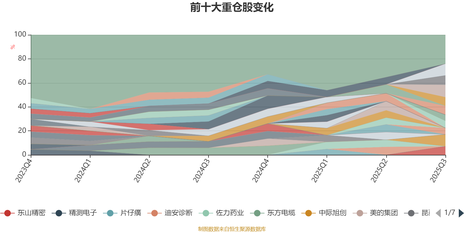 截至2025年三季度末,基金十大重仓股分别是工业富联、中际旭创、新易盛、天孚通信、沪电股份、胜宏科技、东山精密、东田微、生益科技、麦格米特。
