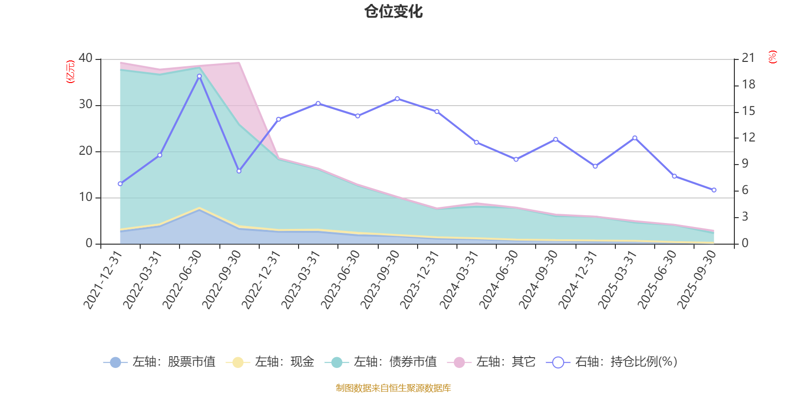 据定期报告数据统计,近三年平均股票仓位为11.99%,同类平均为19.04%。2022年上半年末基金达到19.05%的最高仓位,2025年三季度末最低,为6.12%。