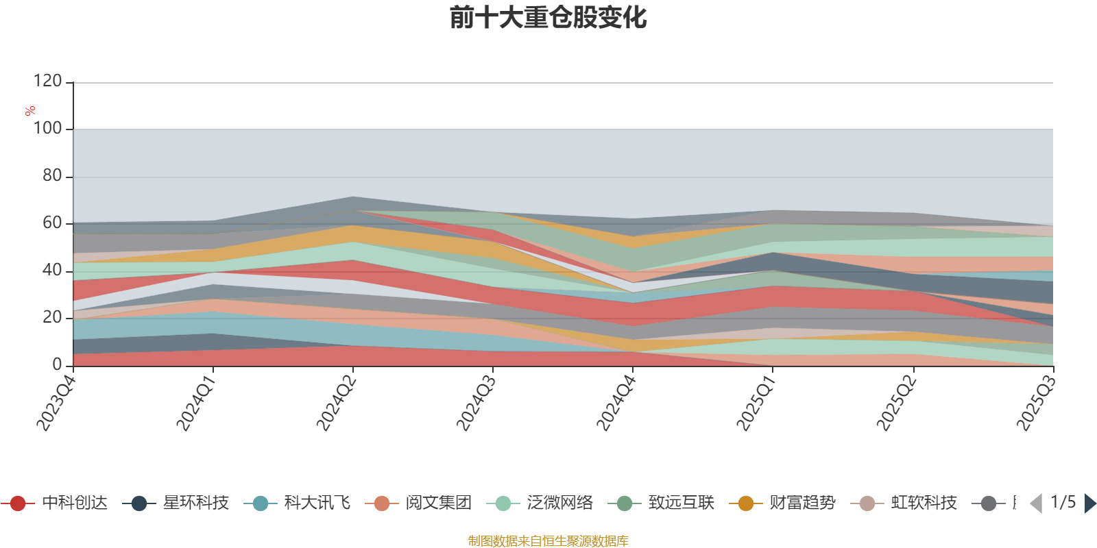 该基金持股集中度较高。截至2025年三季度末,基金十大重仓股分别是阿里巴巴-W、快手-W、腾讯控股、金蝶国际、拓尔思、鼎捷数智、汉得信息、索辰科技、致远互联、泛微网络。