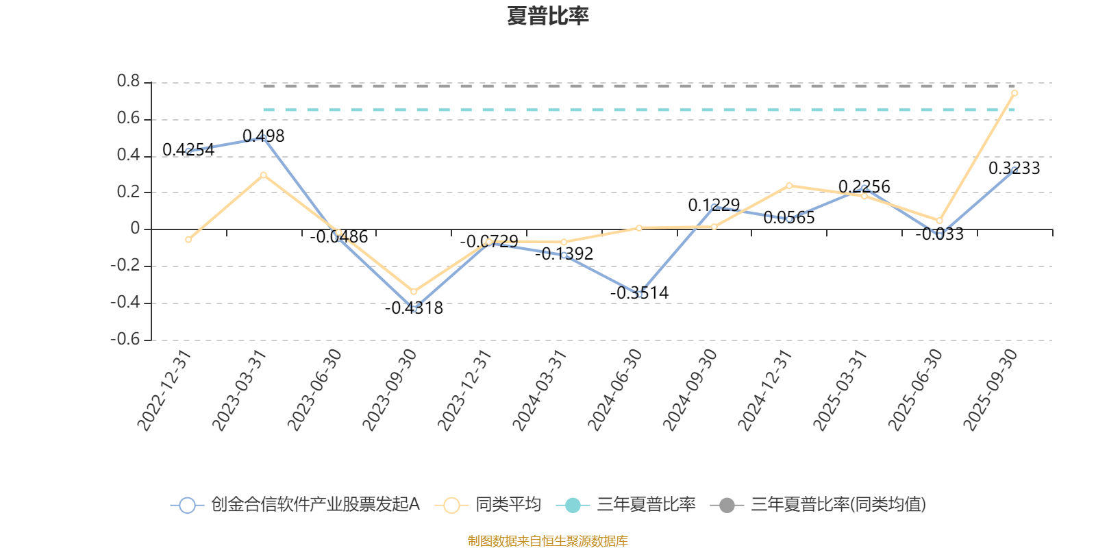 截至9月30日,基金近三年夏普比率为0.6505,位于同类可比基金36/51。
